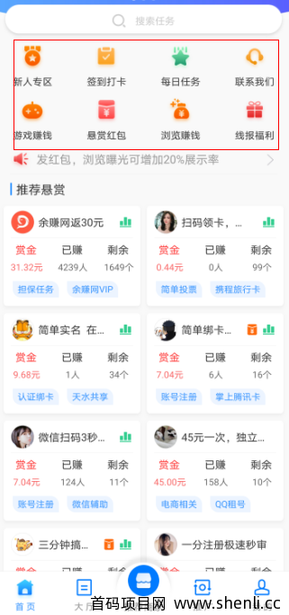 悬赏红包:做完任务除了奖励还有额外的补贴红包。